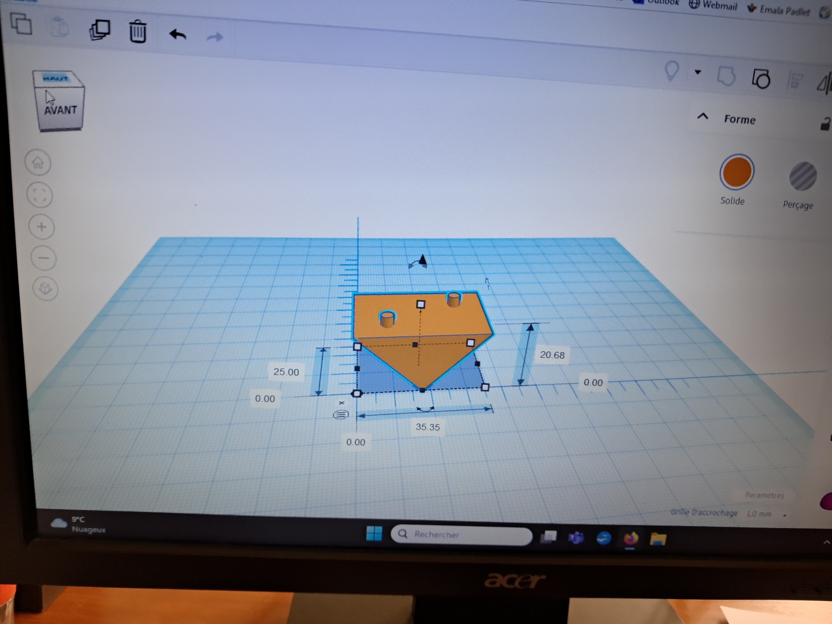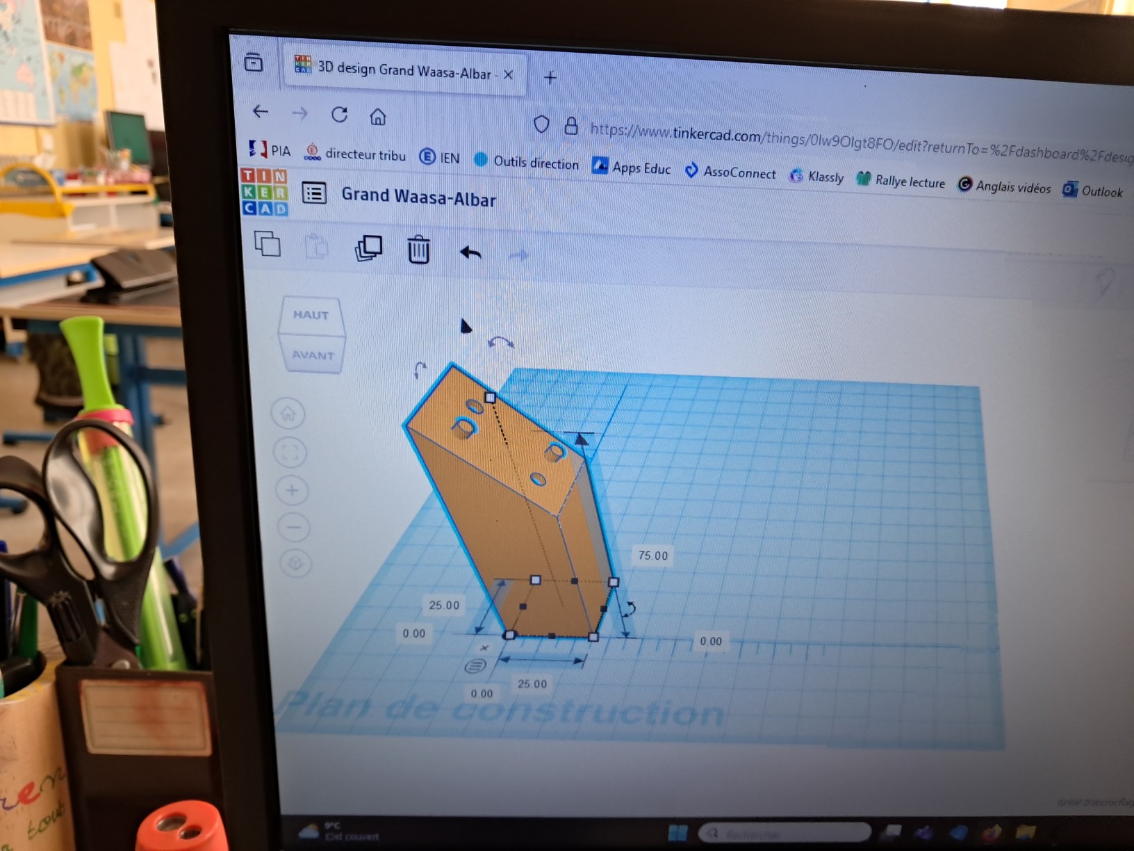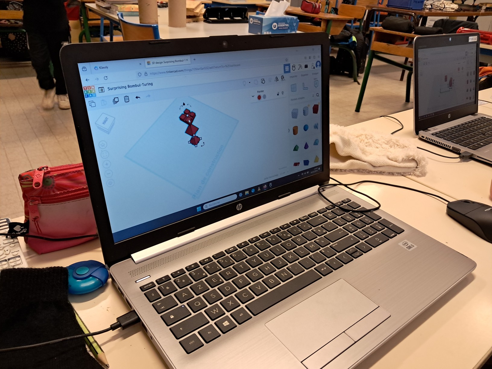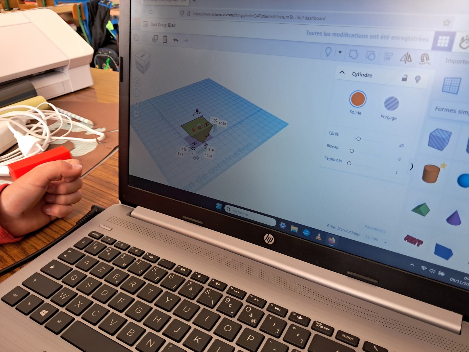 Le deuxième exercice consistait à essayer de dessiner sur ce logiciel des pièces plus complexes qui doivent s’emboîter à 90°. On a fait beaucoup d'essais et il a fallu que plusieurs groupes partagent leurs expériences pour y parvenir mais une fois imprimées, quel plaisir de les voir se clipser l'une sur l'autre à la perfection.