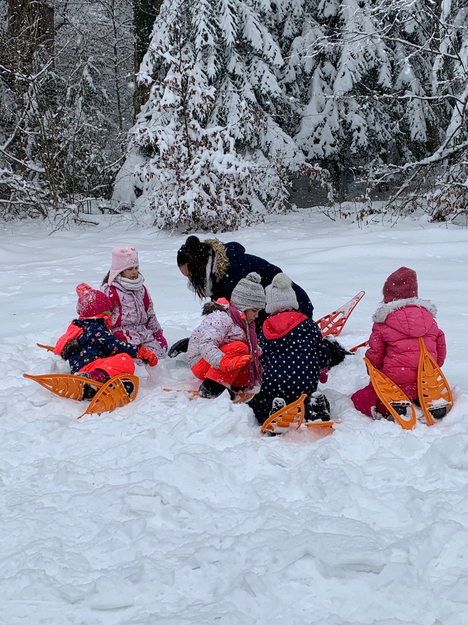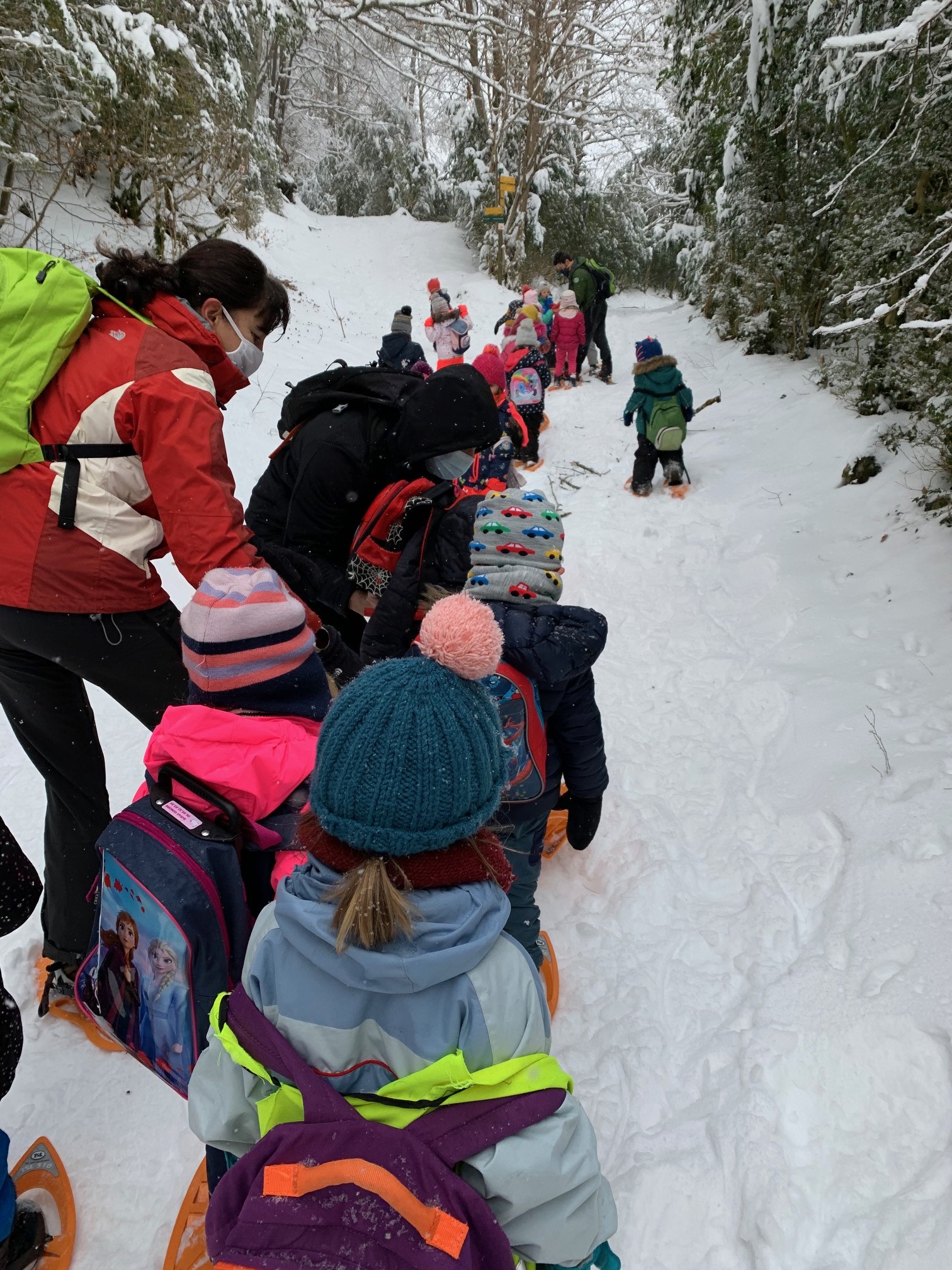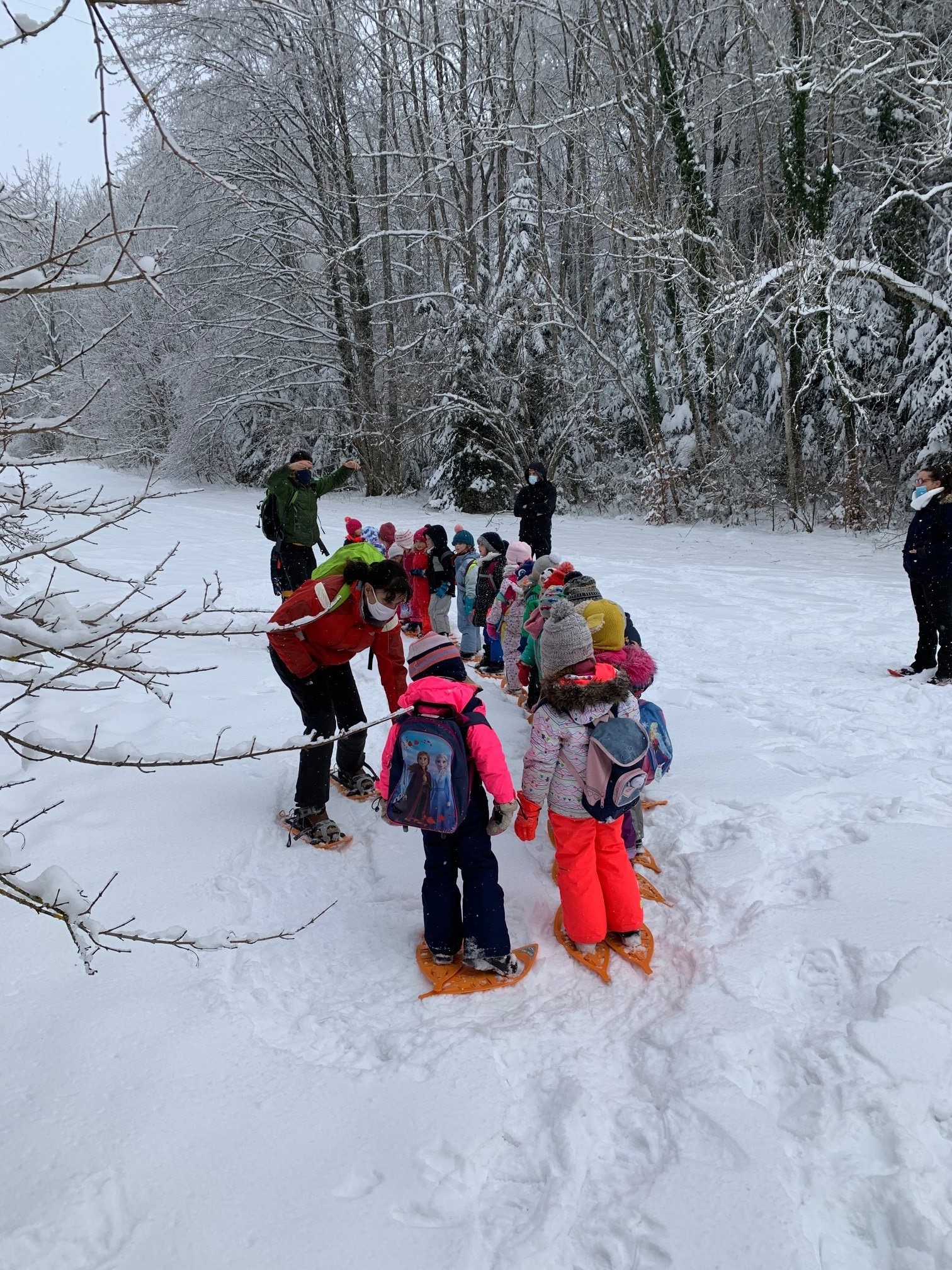 Dans ces temps moroses, si, si... où les projets sont quasi à l’arrêt ! Nous profitons de notre avantage : avoir des chemins actuellement praticables avec des raquettes à neige, à proximité de notre école, un parent accompagnateur en moyenne montagne, un autre agréé.